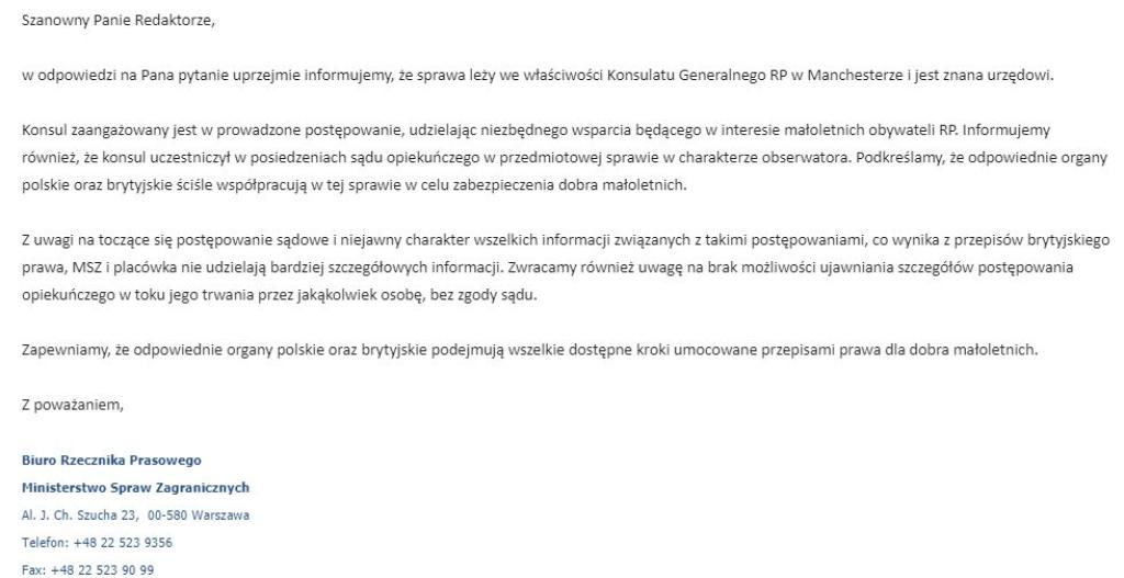 The first meeting - since May 17, 2019 - is scheduled to take place this Wednesday, August 28, 2019. In addition, we have confirmation that the entire scandal publicized by us is now being monitored by the Polish Consulate in Manchester, the Polish Embassy in London and the Ministry of Foreign Affairs.